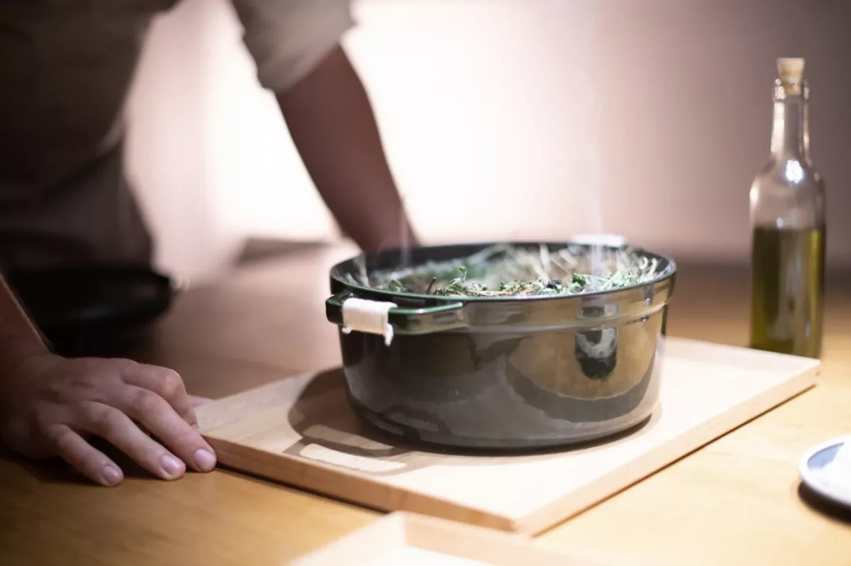 Fortement ancré dans son territoire, Aviron Bistronomie collabore en effet avec des artisans basques : la boulangerie Etxe Goxoan pour le pain, les Couteliers Basques pour les arts de la table, Lionel Osmin & Cie pour les vins… Chaque partenariat est pensé pour prolonger l’expérience, de l’assiette jusqu’aux détails du service.